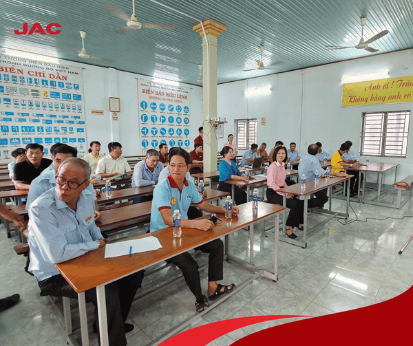 Chương trình được xây dựng bài bản, khoa học, mang tính thực tiễn cao với nhiều nội dung trọng tâm. Mở đầu, đại diện Công ty Ô tô JAC Việt Nam đã giới thiệu tổng quan về thương hiệu JAC – một trong những nhà sản xuất xe tải hàng đầu – cùng với các dịch vụ, chính sách hậu mãi đang được áp dụng tại thị trường Việt Nam. Thông tin về chính sách bảo hành, bảo dưỡng cũng được chia sẻ cụ thể, giúp giáo viên hiểu rõ quy trình chăm sóc, vận hành xe đúng chuẩn để từ đó truyền đạt lại cho học viên.